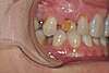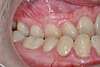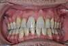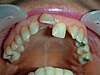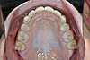 Adulte de 40 ans n’ayant jamais perdu ses canines de lait. Les canines définitives étant bloquées au niveau du palais, le traitement a consisté à tracter les dents bloquées puis à les aligner.